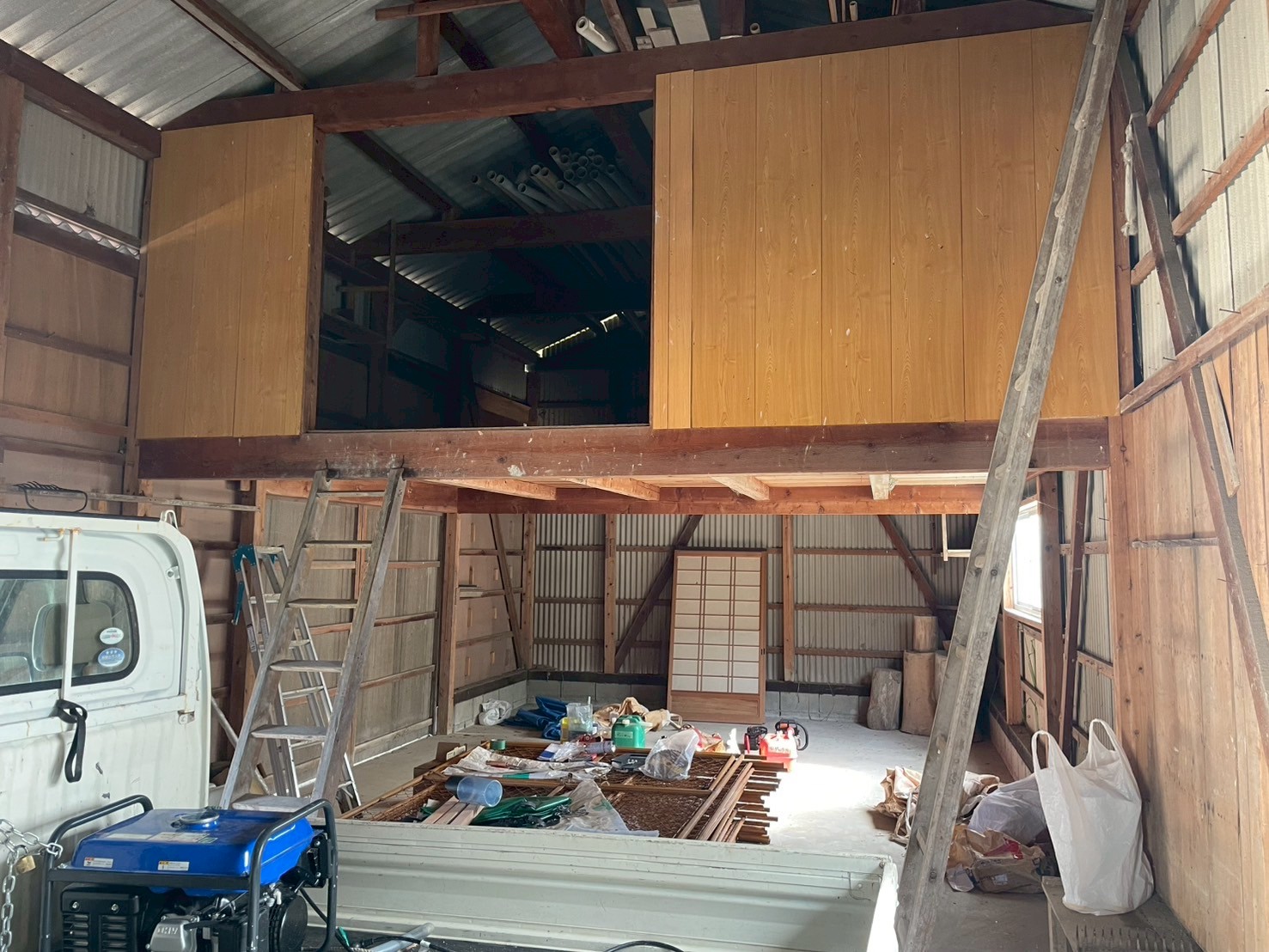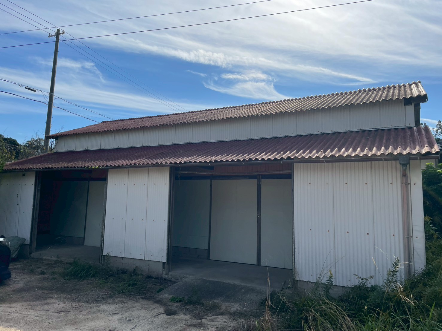 宅地の南側には車庫・倉庫があります。農具の収納や趣味の作業場として活用できます。
