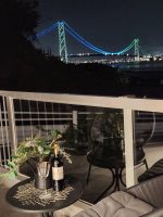 広く取ったテラスで、海の景色や橋の夜景を楽しめ、