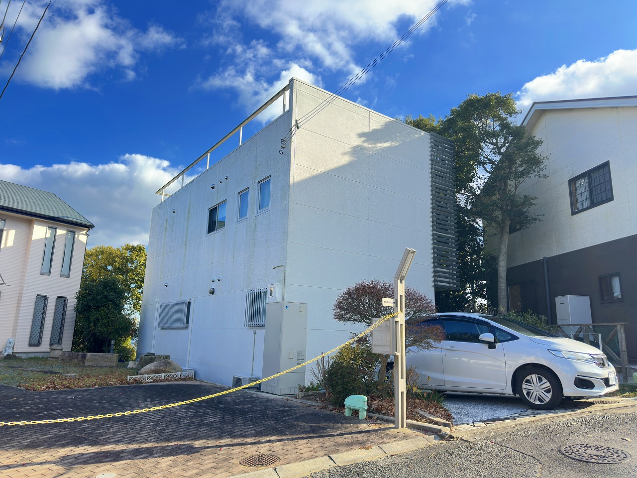 淡路市里、人気の別荘地「海平の郷」に佇む鉄骨造2階建てのオール電化別荘。