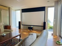 1階には床暖房を完備したリビングダイニング、囲炉裏付きダイニングテーブル、三菱製ホームシアターを設置し、非日常の寛ぎ空間を演出します。