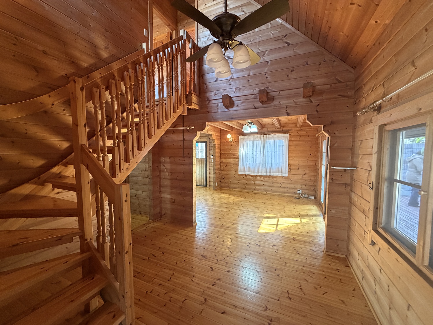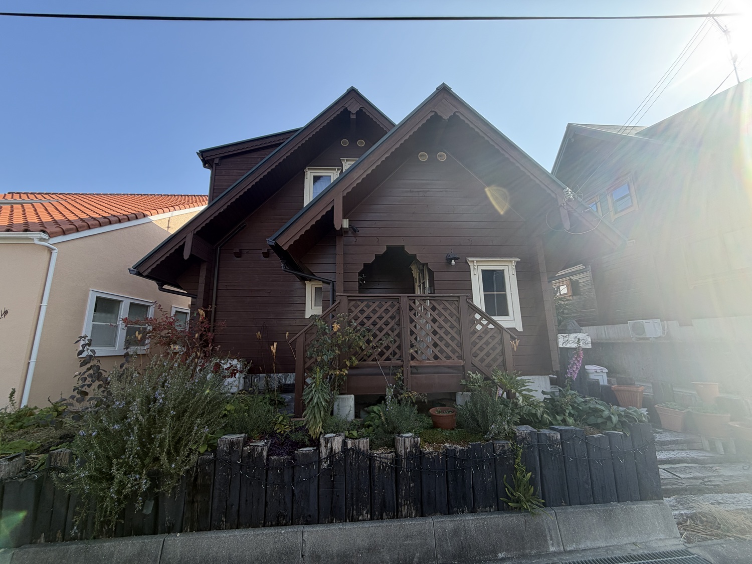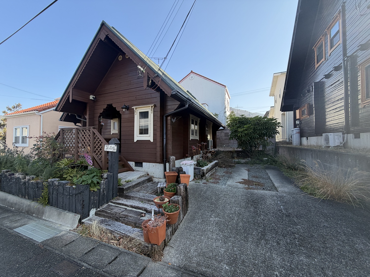 三角屋根の素敵なログハウス一戸建てです。