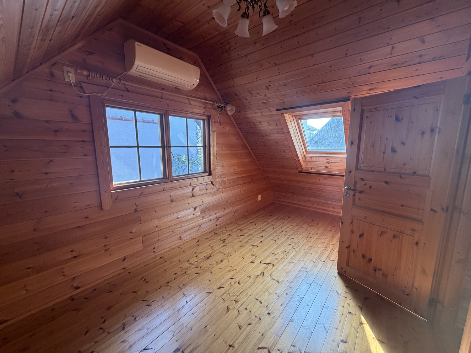 2階は三角屋根で一部天井低いですが、2部屋あります。