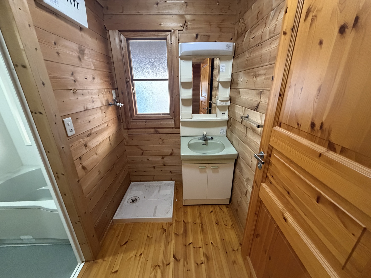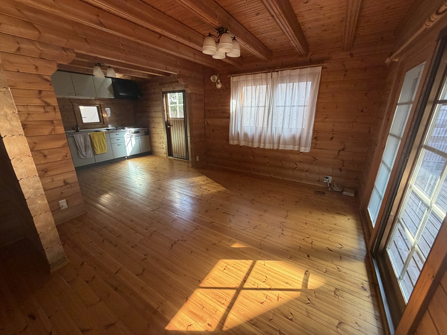 エアコン3台あり(残置物)、広いウッドデッキあり。