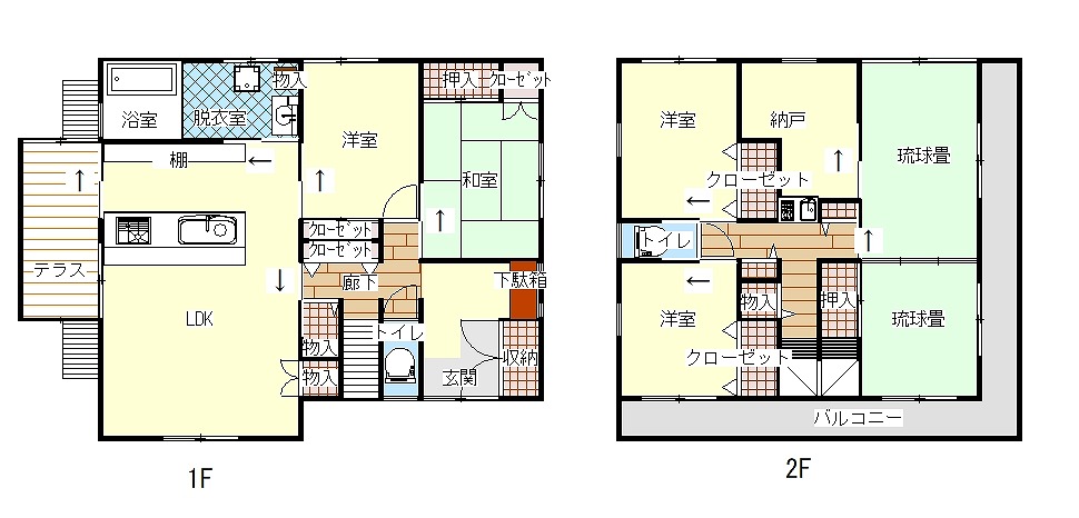 | 間取内容 | 1階和室1室 1階洋室1室 2階和室2室 2階洋室3室 間取図参照 |