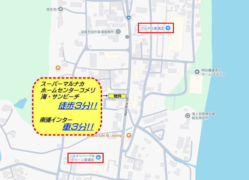 久留麻☆28号線沿いの店舗+住居のセット★ビーチもスーパーも近く★利便性◎